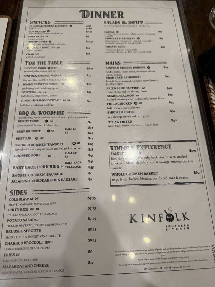 Kinfolk also emphasizes accessibility with features like outdoor seating and ADA-compliant entrances, ensuring a welcoming experience for all. Join us for happy hour specials and enjoy a full bar to complement your meal, making every visit unforgettable. Experience Southern comfort cuisine redefined at Kinfolk!